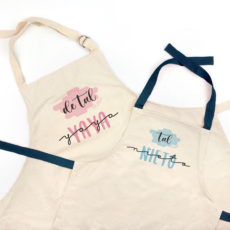 Pack Delantal Abuela y Delantal Nieta Rosa Divertido De tal Abuela, tal nieta