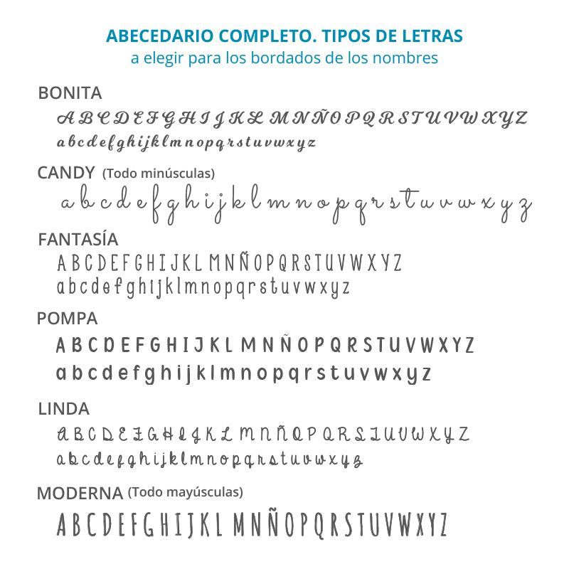 ¿Quieres un segundo nombre o un dibujito bordado? ¡Dale caña! Consulta los modelos disponibles en imágenes.