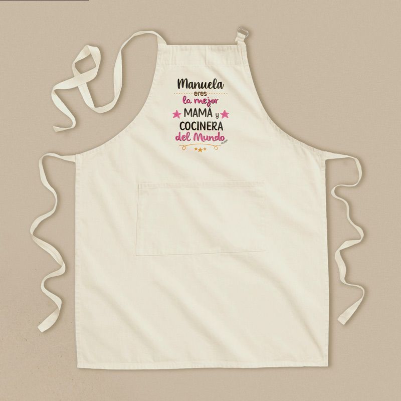 Delantal Algodón Premium Personalizado (Nombre) Eres la mejor Mamá y Cocinera del Mundo