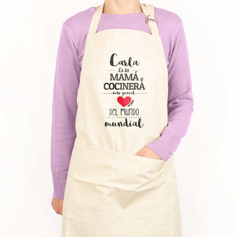 Delantal Algodón Premium Personalizado (Nombre) Eres la Mamá y Cocinera más genial del Mundo mundial