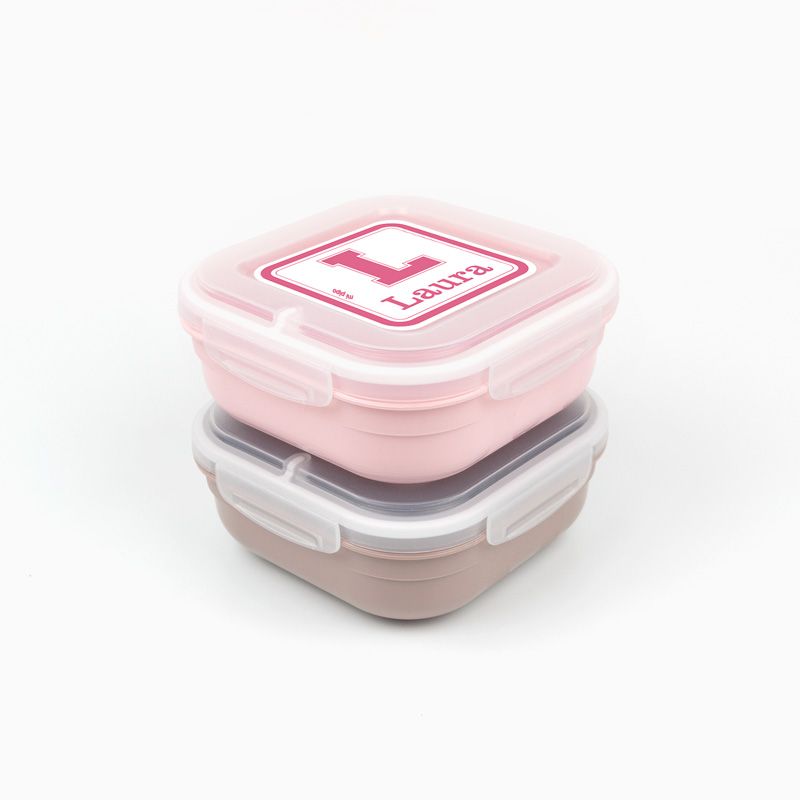 Pack 2 Fiambreras herméticas personalizadas School, color Topo y Rosa
