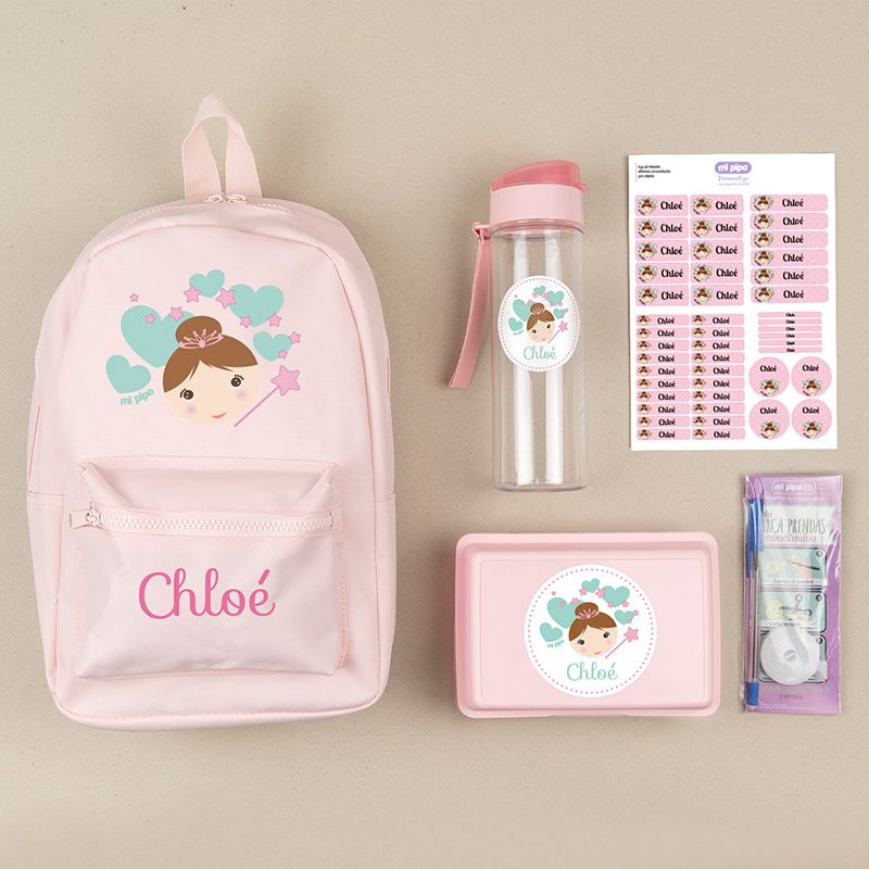 Pack Mi Equipo para el Cole con Mochila Hada personalizado + Regalo Marcaprendas