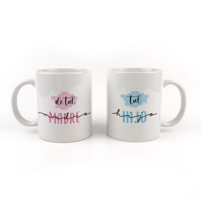 Pack Tazas cerámica o plástico De tal Madre, tal Hijo
