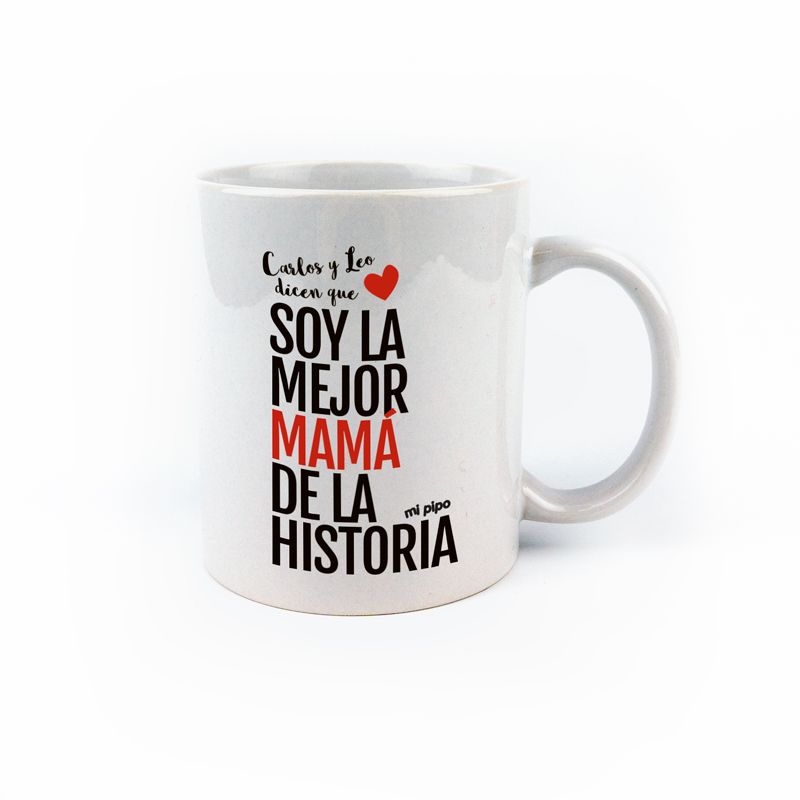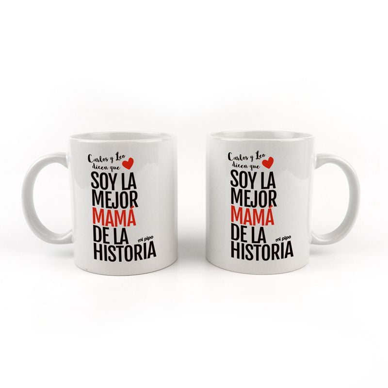 Taza cerámica o plástico Mamá Nombre/s dice/n que Soy a mejor mamá de la historia personalizada