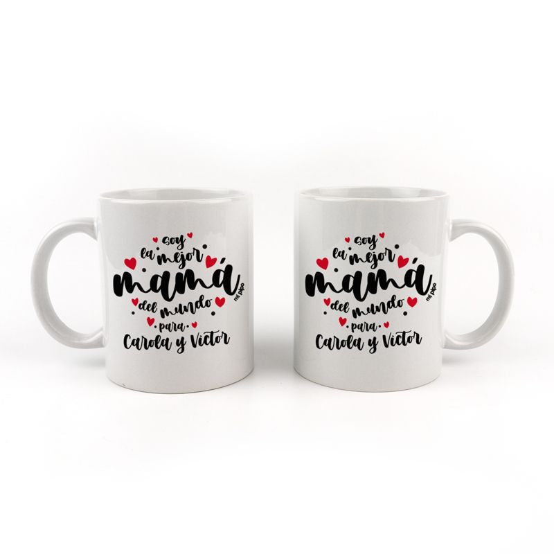 Taza cerámica o plástico Mamá Soy la mejor mamá del mundo para corazones lunares personalizada