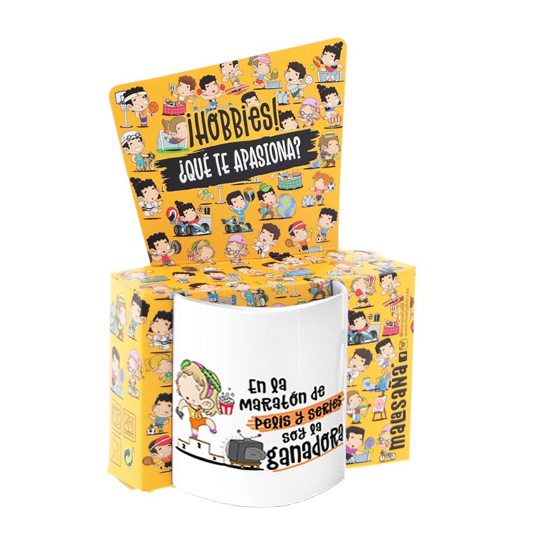 ☕ Taza “En la maratón de pelis y series soy la ganadora” – de Malasaña | Taza divertida para mujeres seriéfilas