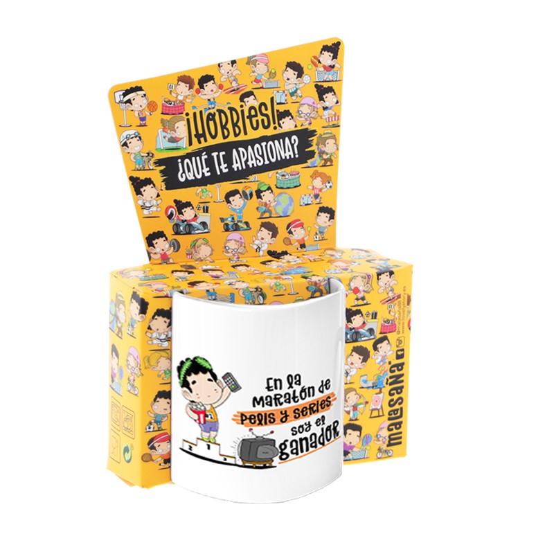Esta taza “de Malasaña” es para los campeones del mando a distancia, los que ven una temporada entera sin pestañear y los que siempre ganan la maratón (aunque pierdan horas de sueño).